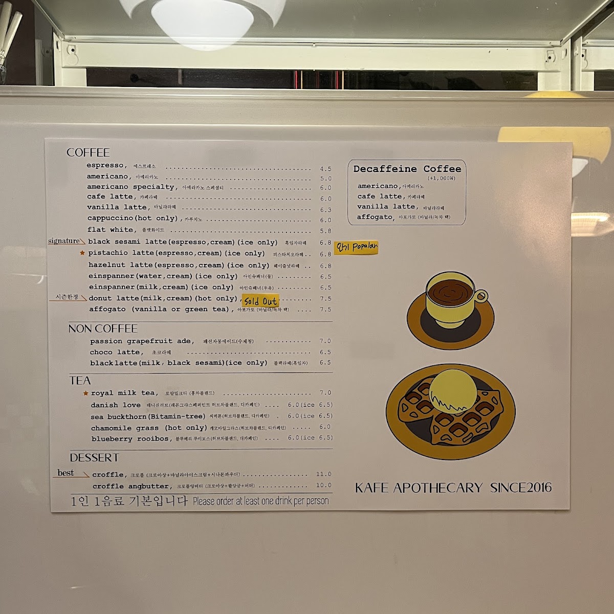 Kafe Apothecary, located in the heart of Jung District, Seoul, invites you on a delightful culinary journey. This trendy café blends modern design with a cozy atmosphere, making it an ideal spot to unwind. The star of the menu is undoubtedly the Einspanner, a creamy Viennese coffee that has enchanted many visitors with its rich flavor and smoothness. Paired with their unique croffle—a delectable fusion of croissant and waffle, topped with ice cream and hints of cinnamon—it creates a memorable taste experience.
